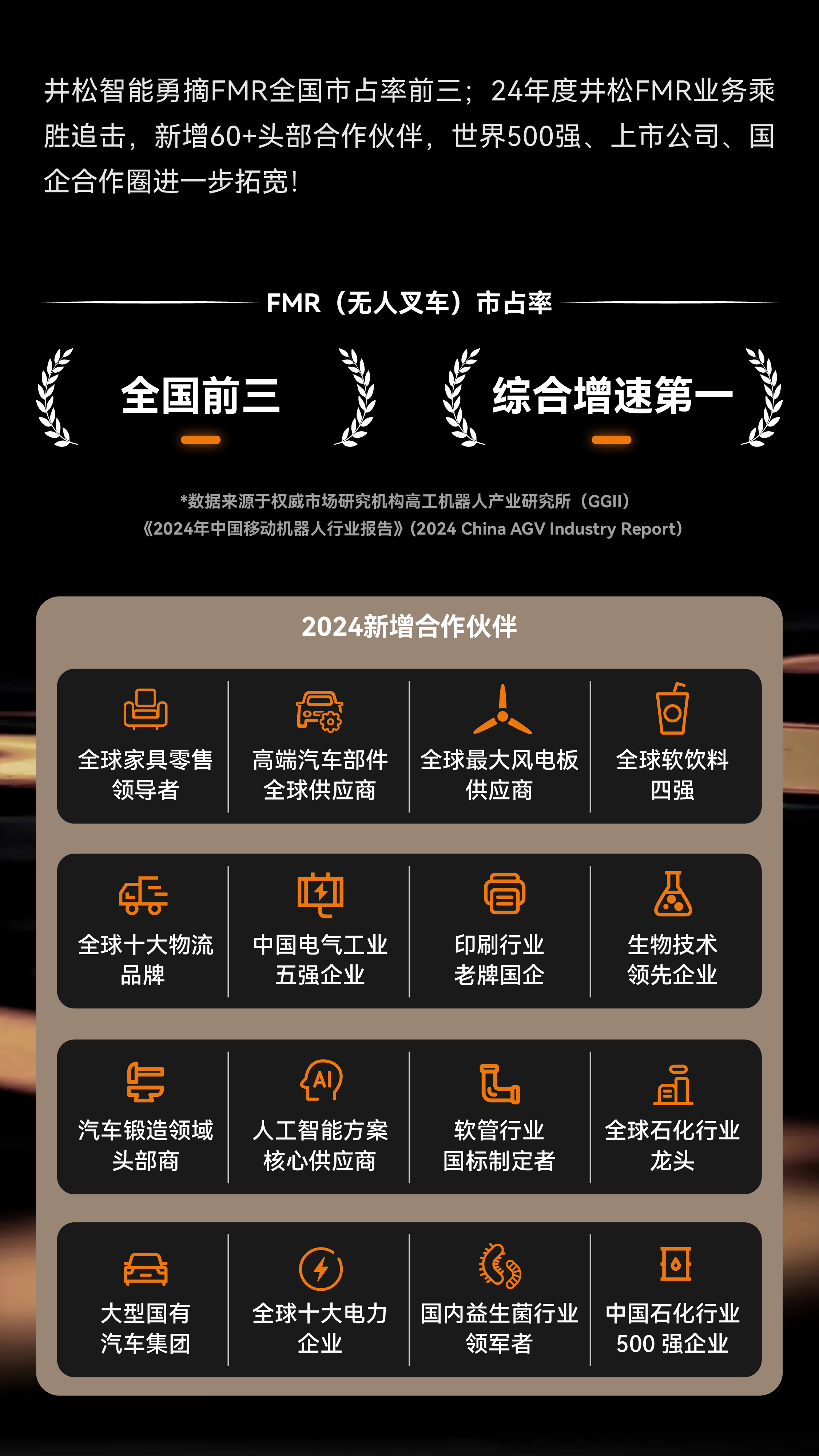 井松智能勇摘FMR全國市占率前三;24年度井松FMR業(yè)務(wù)乘勝追擊,新增60+頭部合作伙伴,世界500強(qiáng)、上市公司、國企合作圈進(jìn)一步拓寬!