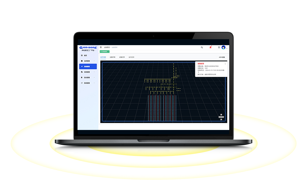 5、支持設(shè)備任務(wù)、作業(yè)流程、設(shè)備路徑、運行故障等實時監(jiān)控可視化管理